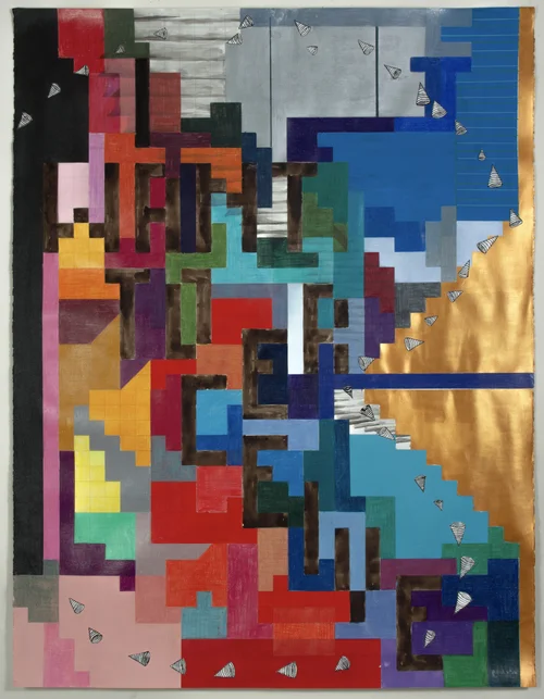 Borrowing imagery from diverse sources – West African iconography, political movements, planar geometry, plant growth, and sports – Mildred Beltré’s playful abstract constructions are metaphors for the complexity of human relationships. Her work is constantly evolving, is never polished, and is in a perpetual state of progress. As an artist and activist, imagination and the ability to dream are fundamental to Beltré’s artistic process. Dreams cannot be realized with the absence of imagination and our world seldom changes without actively re-envisioning social constructs. Beltré not only provides a way for us to reimagine the world we live in, she also issues us a challenge to accept the effort that inherently accompanies dreaming.